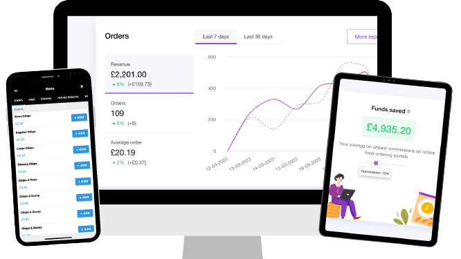 Many restaurants partner with popular food ordering portals such as JustEat, UberEats, and Deliveroo. While these third-party portals offer the convenience of a ready-made ordering system, they come with drawbacks such as high commissions (10% -20% on every sale) no control over customer data and no branding